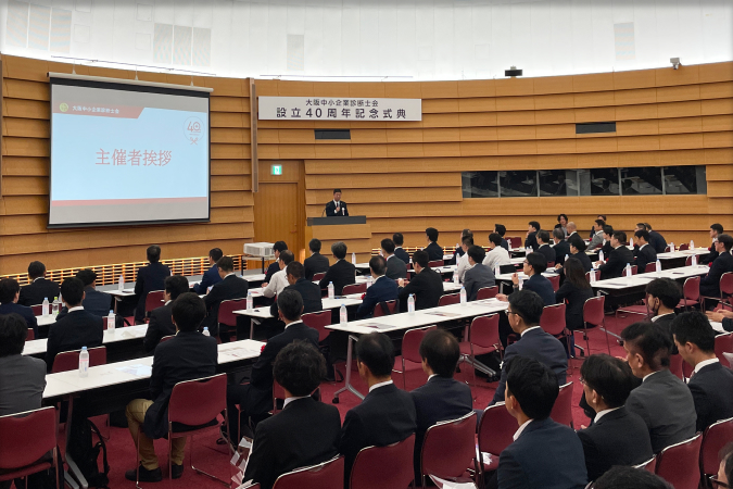 当会は10月16日、グランキューブ大阪 特別会議場にて「40周年記念式典」を開催いたしました。当日は来賓・会員合わせて166名の皆さまにご参加いただき、40年の節目をともに祝う大変賑やかな式となりました。