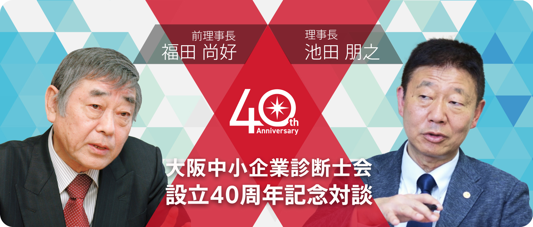このたび、大阪中小企業診断士会は設立40周年を迎えることができました。これもひとえに、長きにわたり業界を牽引された福田先生をはじめ、諸先輩方、会員の皆様あってのものです。心より感謝申し上げます。